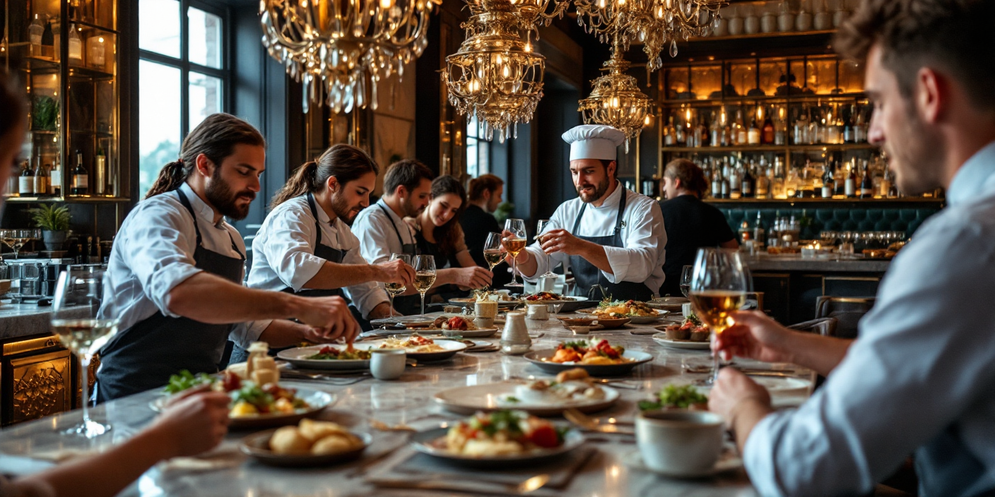 Fine-dining × lounge hybrid. Mint led kitchen & bar layouts, menu engineering, and pre